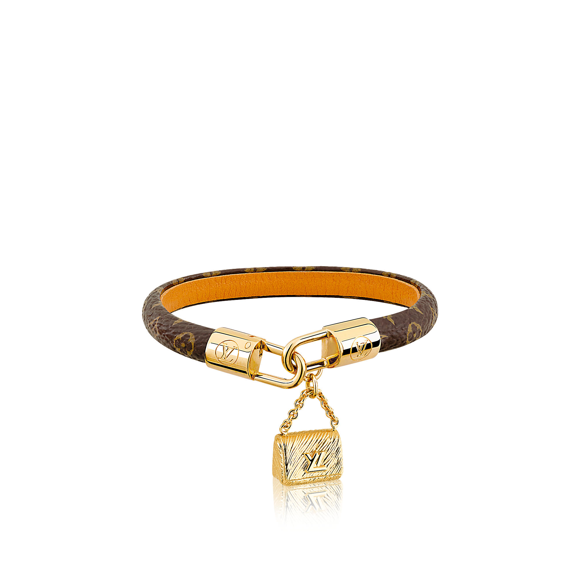 Inspired by Louis Vuitton’s Twist bag, the Twist Lock bracelet in iconic Monogram canvas or Epi leather is accessorised with a feminine tinkling charm, a perfect miniature replica of the emblematic bag.