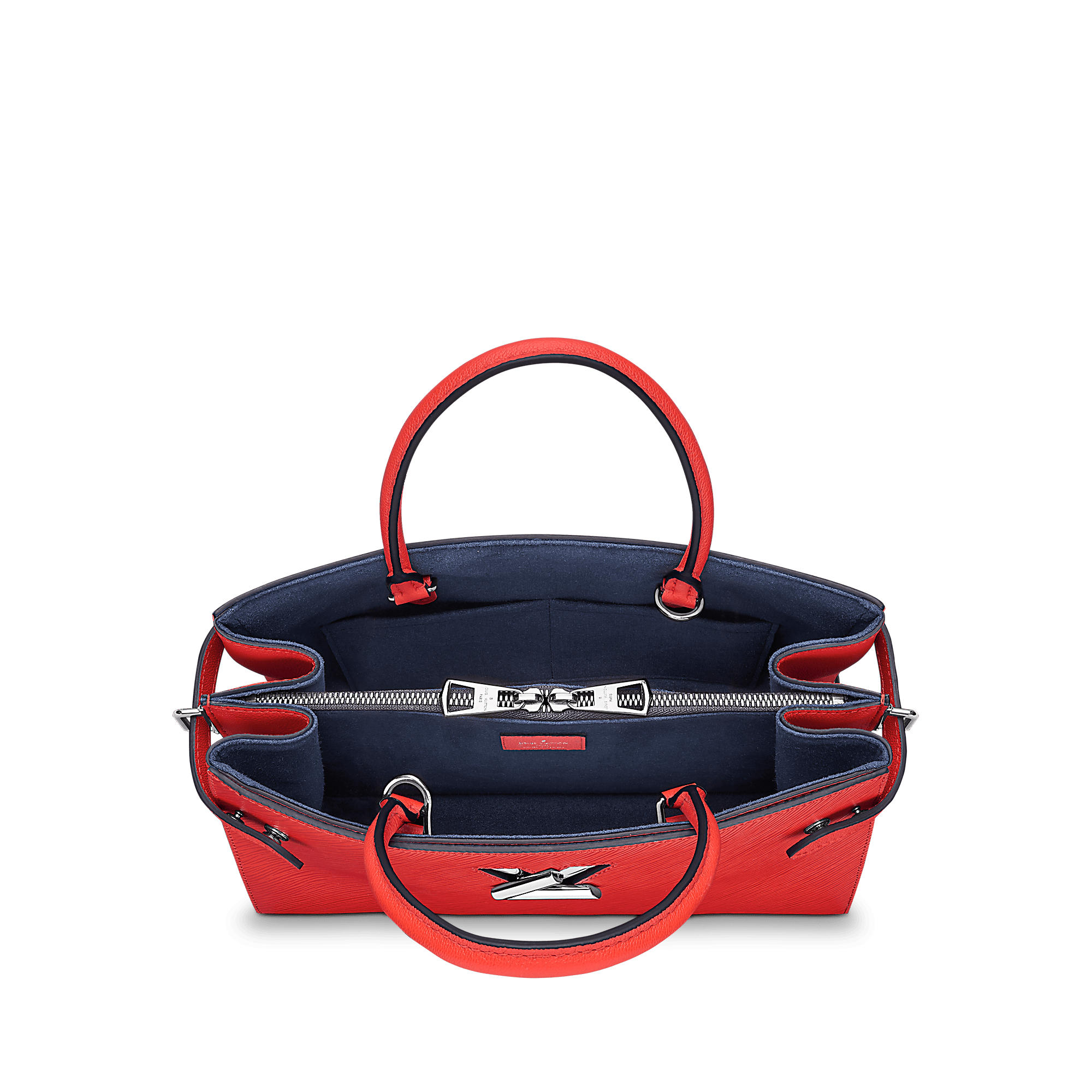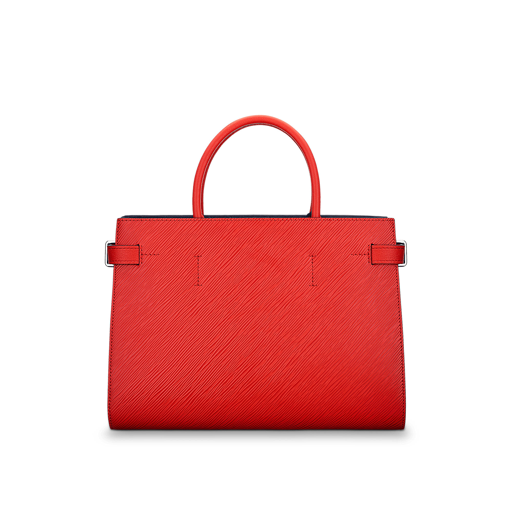 – 1 front flat pocket with transforming signature silver LV twist-lock