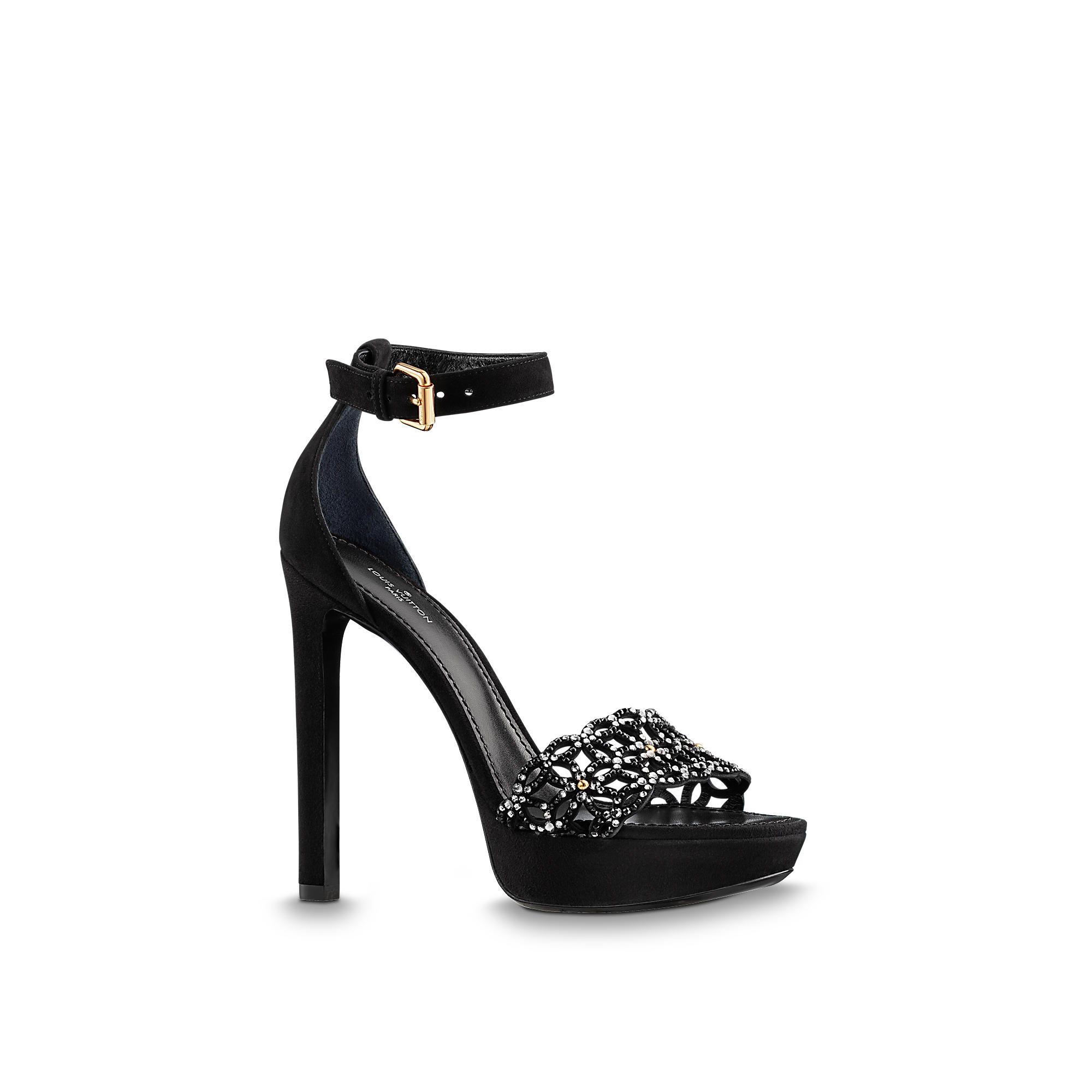 A stand-out look for evening, this platform sandal features a stunning interpretation of the Monogram pattern in glittering strass.
