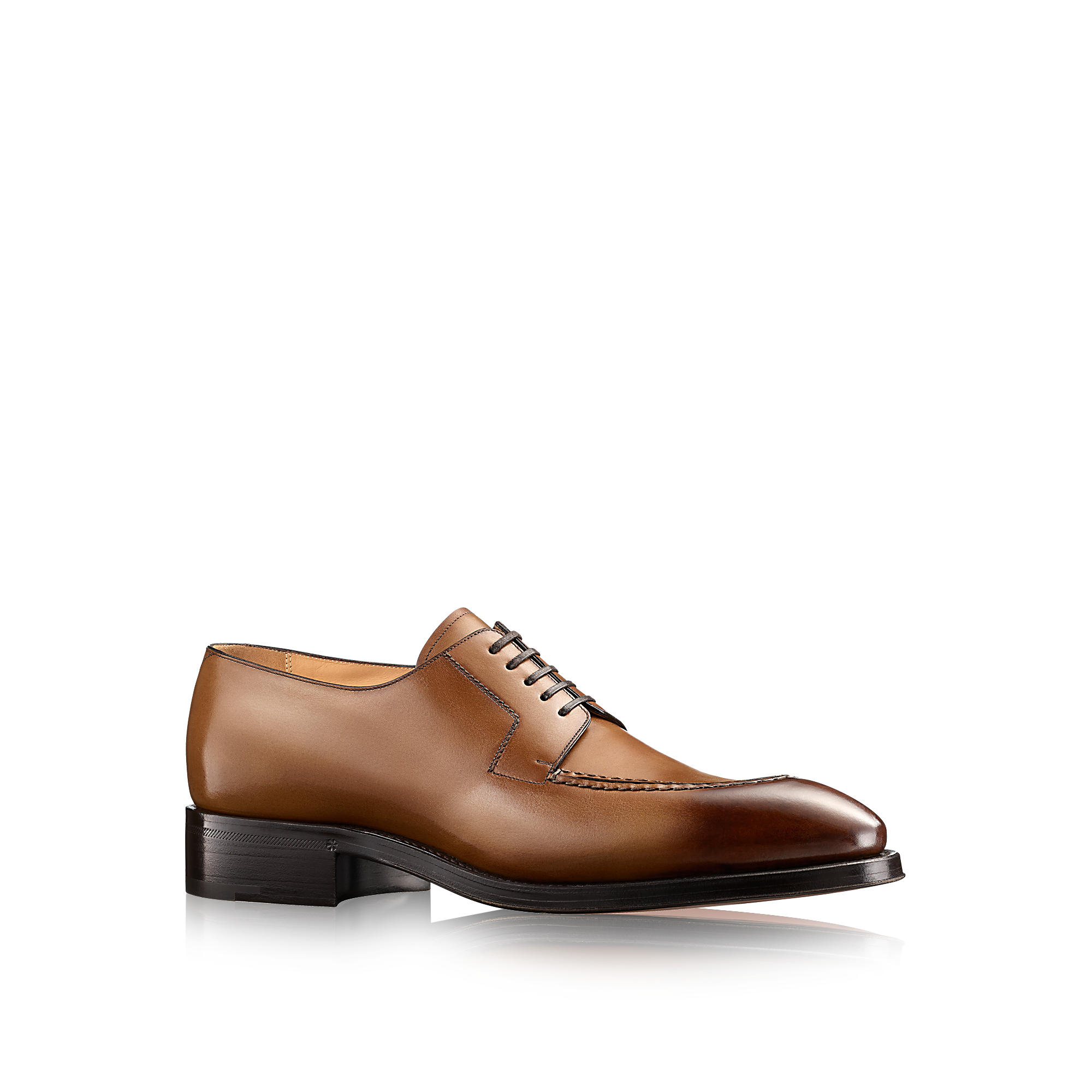 Derby in waxed calf leather with a Goodyear construction, leather hand-painted outsole.