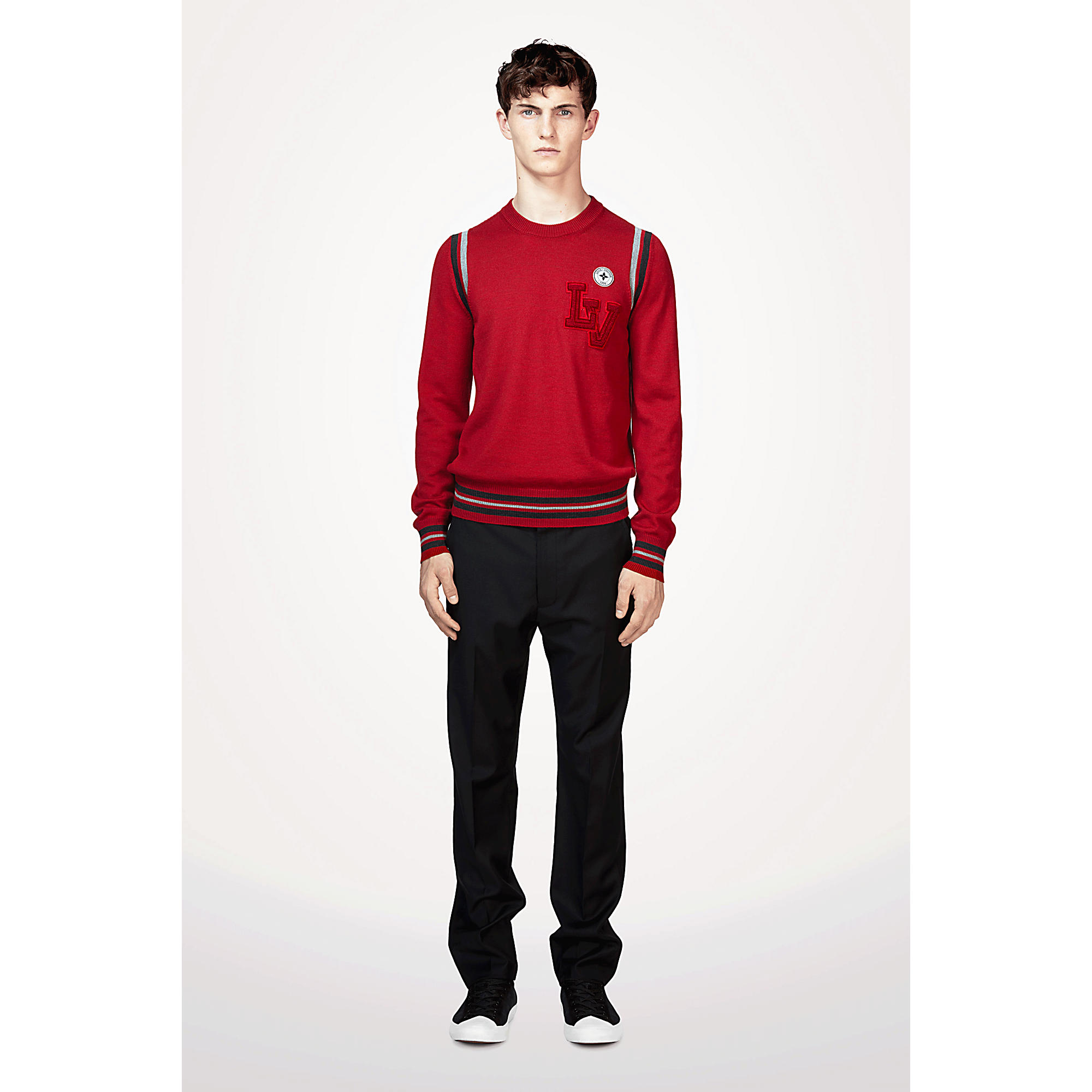 Embellished with three-colour ribbing details on the waist, cuffs and shoulders, it features the season’s signature tonal LV patch in toweling fabric on the chest.