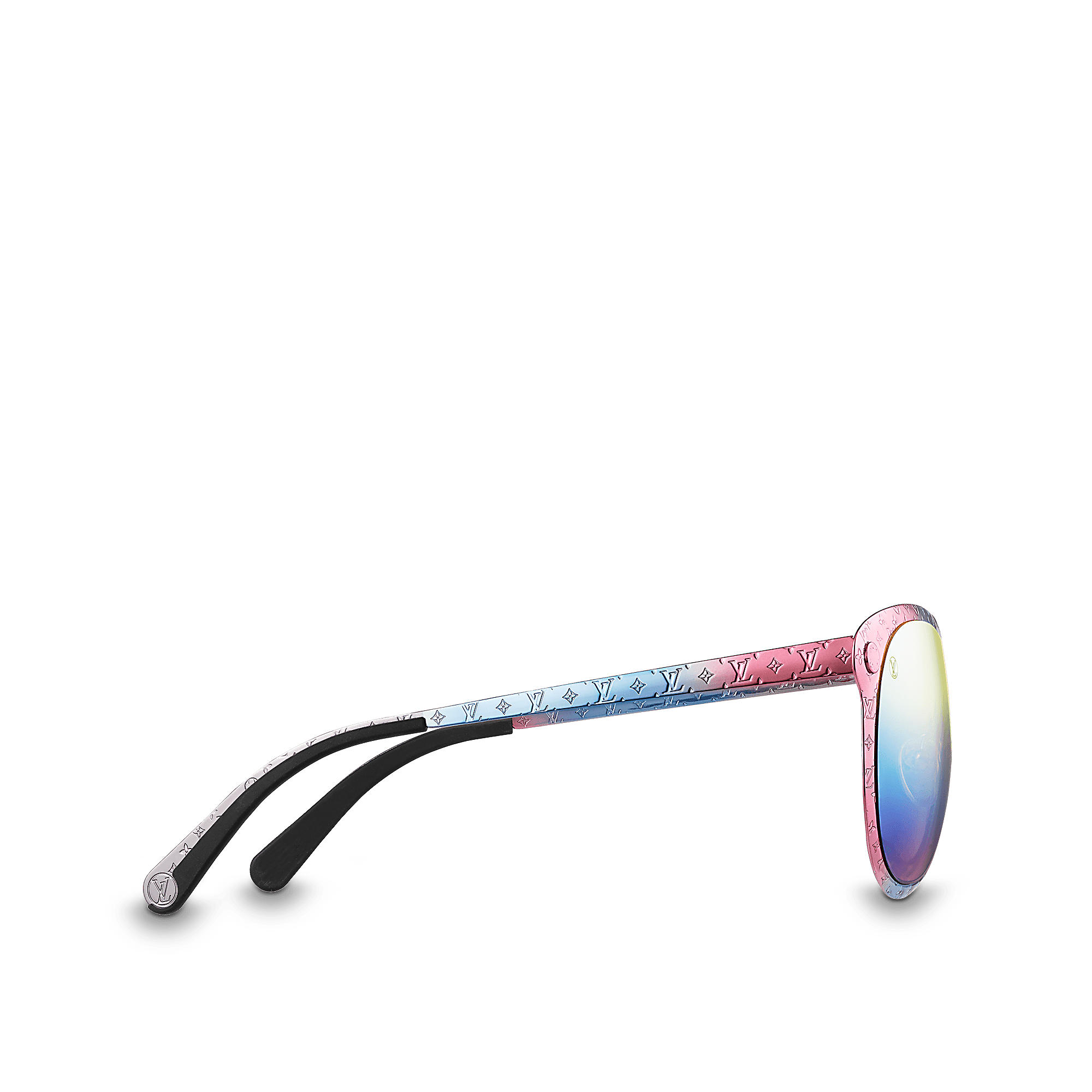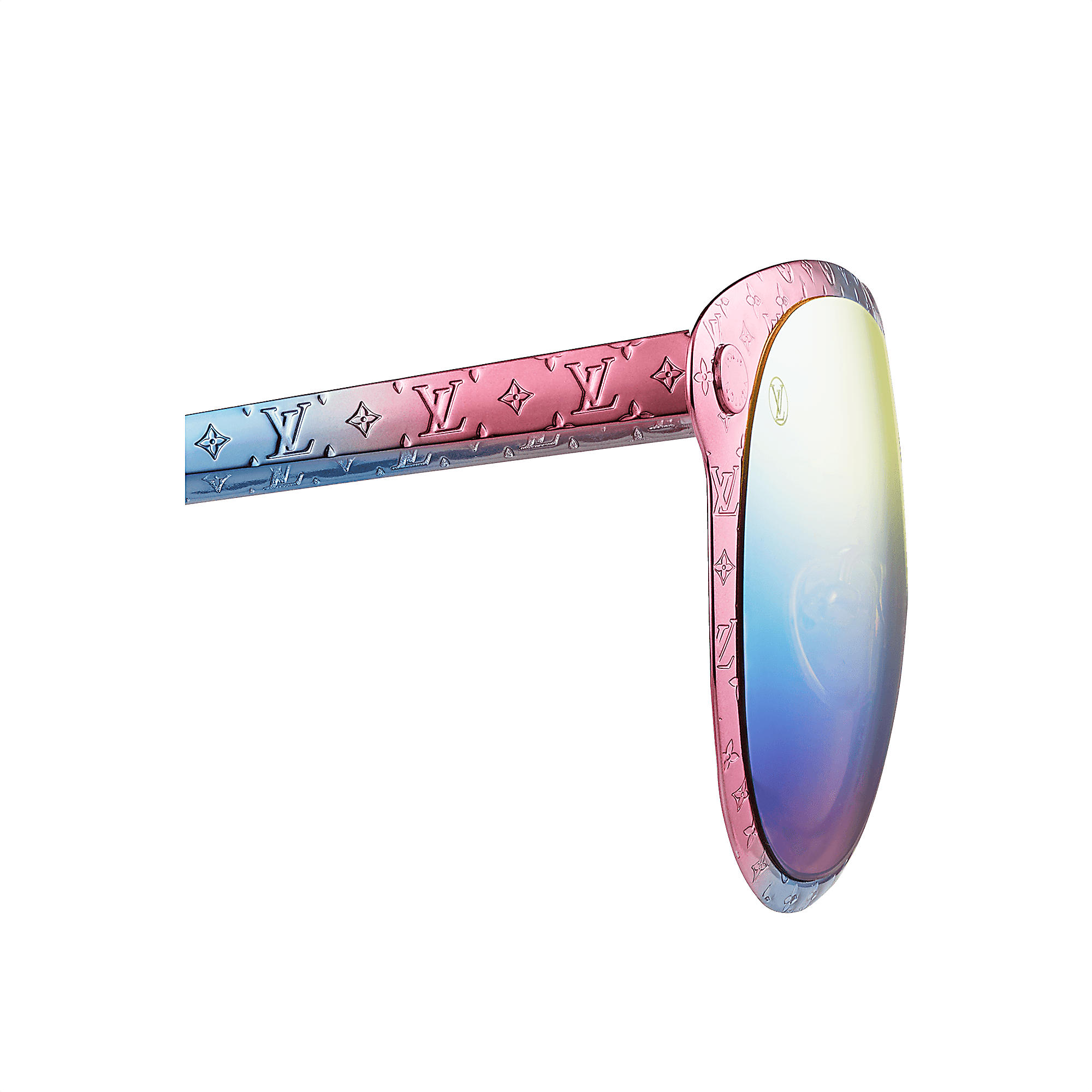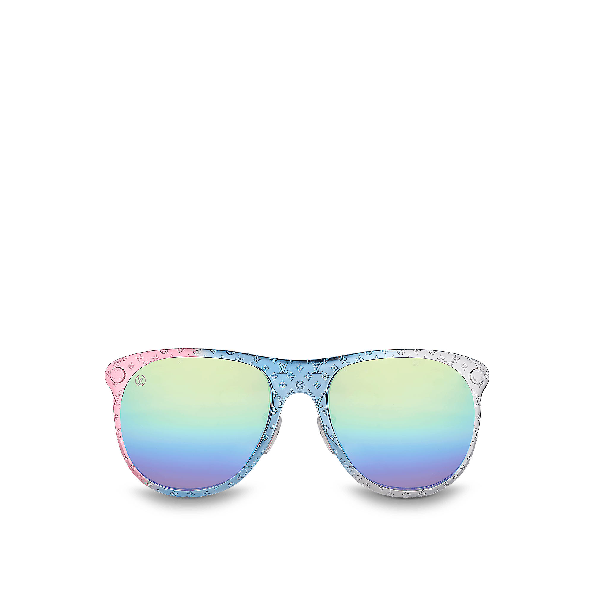 This eye-catching design features an all-over iridescent effect, on the frame and on the lenses. The front and temples are engraved with the Monogram design for an iconic touch. Perfect for summer !