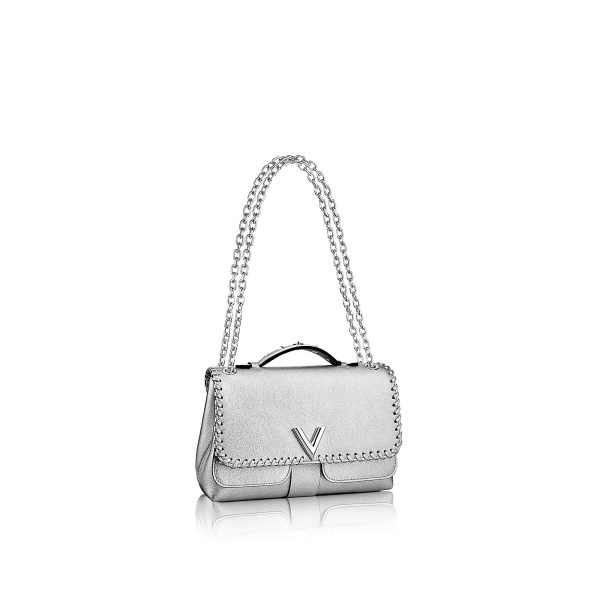With its pure lines and sophisticated details, the Louis Vuitton Very Chain Bag in supple Cuir Plume and Cuir Ecume leathers is your new must-have bag. The delicate chain and crafted V signature provide glamour while the flap and lock closure keep your essentials safe inside. Very body friendly, thanks to its soft feel and very light weight. The silky & very transparent leather played in contrasted with a small grained version lets discreetly appear the Monogram pattern.