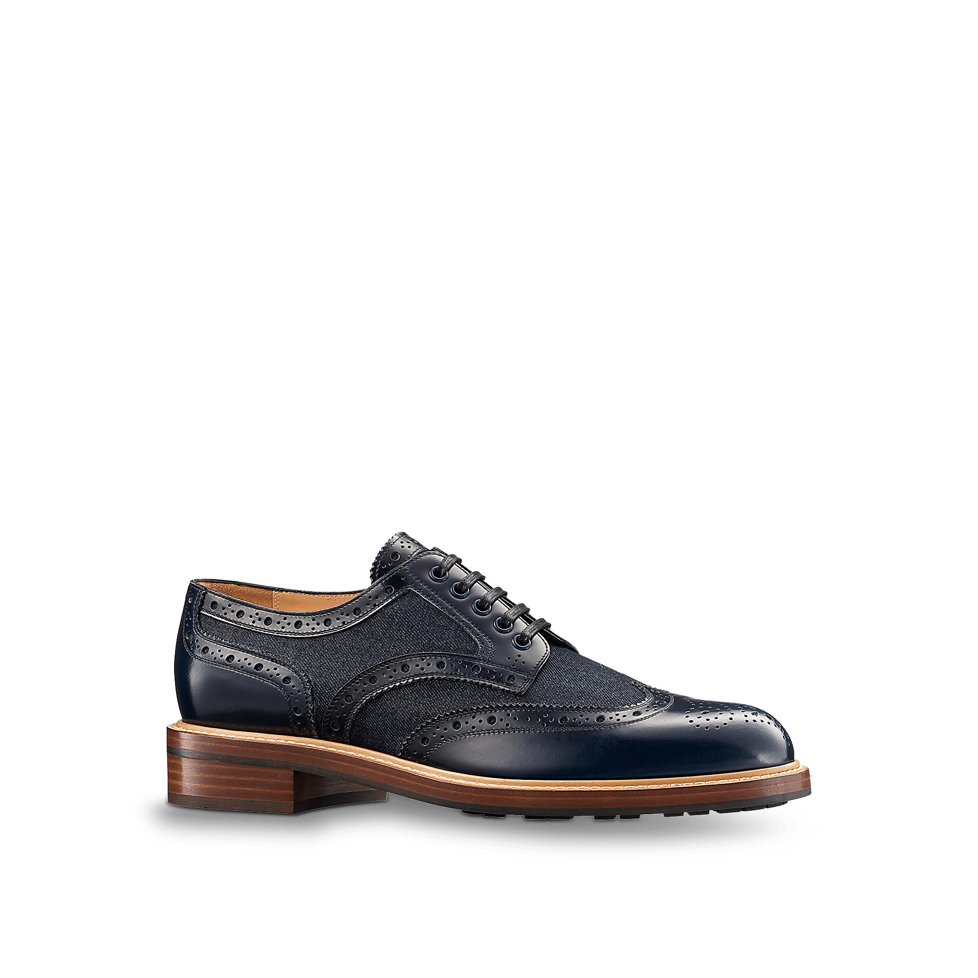 Derby in waxed calf leather, a perforated “LV” signature on the toe of the shoe, hand-crafted patina and a leather hand-painted outsole.