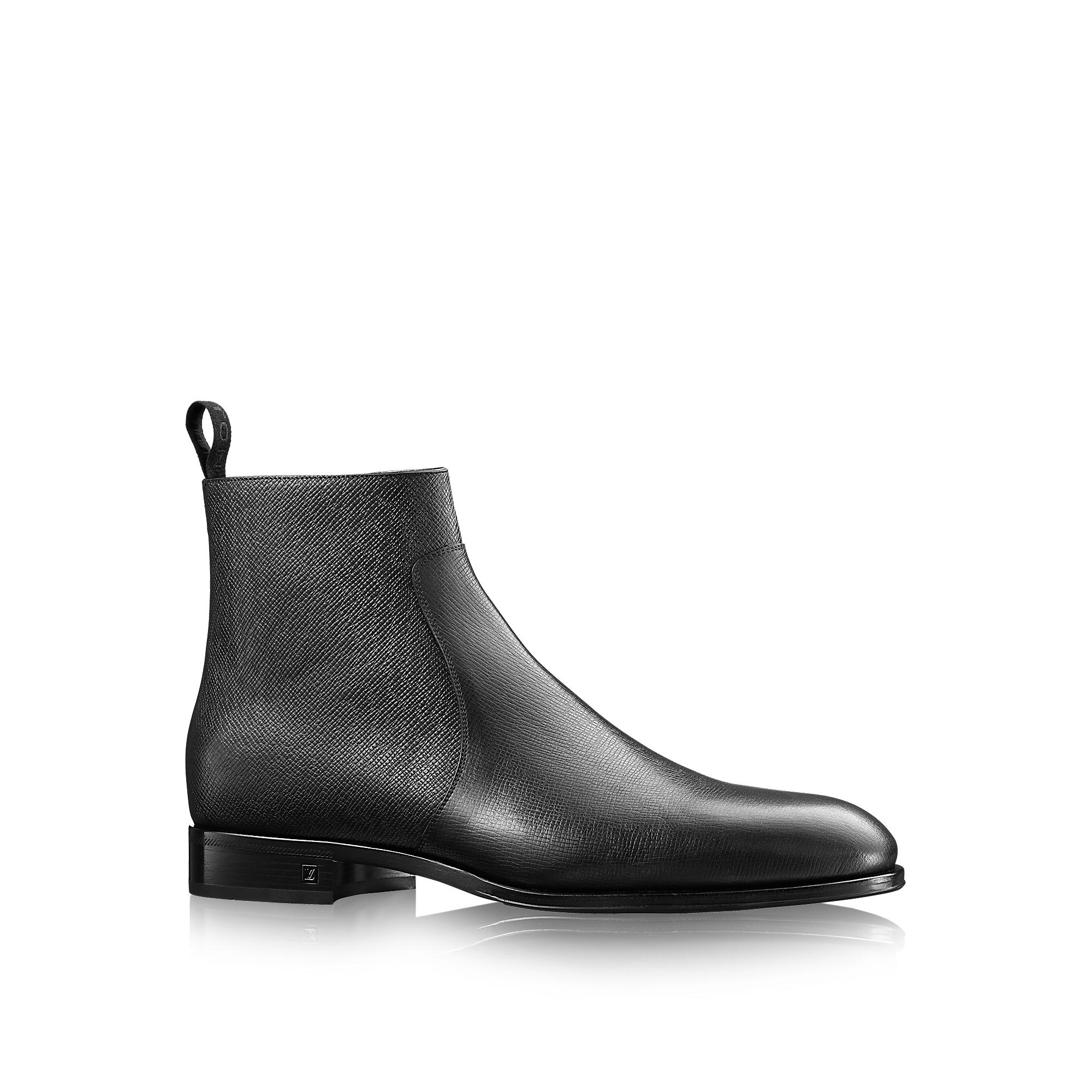 – Taiga leather– Ruthenium LV cube lacquered in black in the heel– Leather outsole with rubber insert