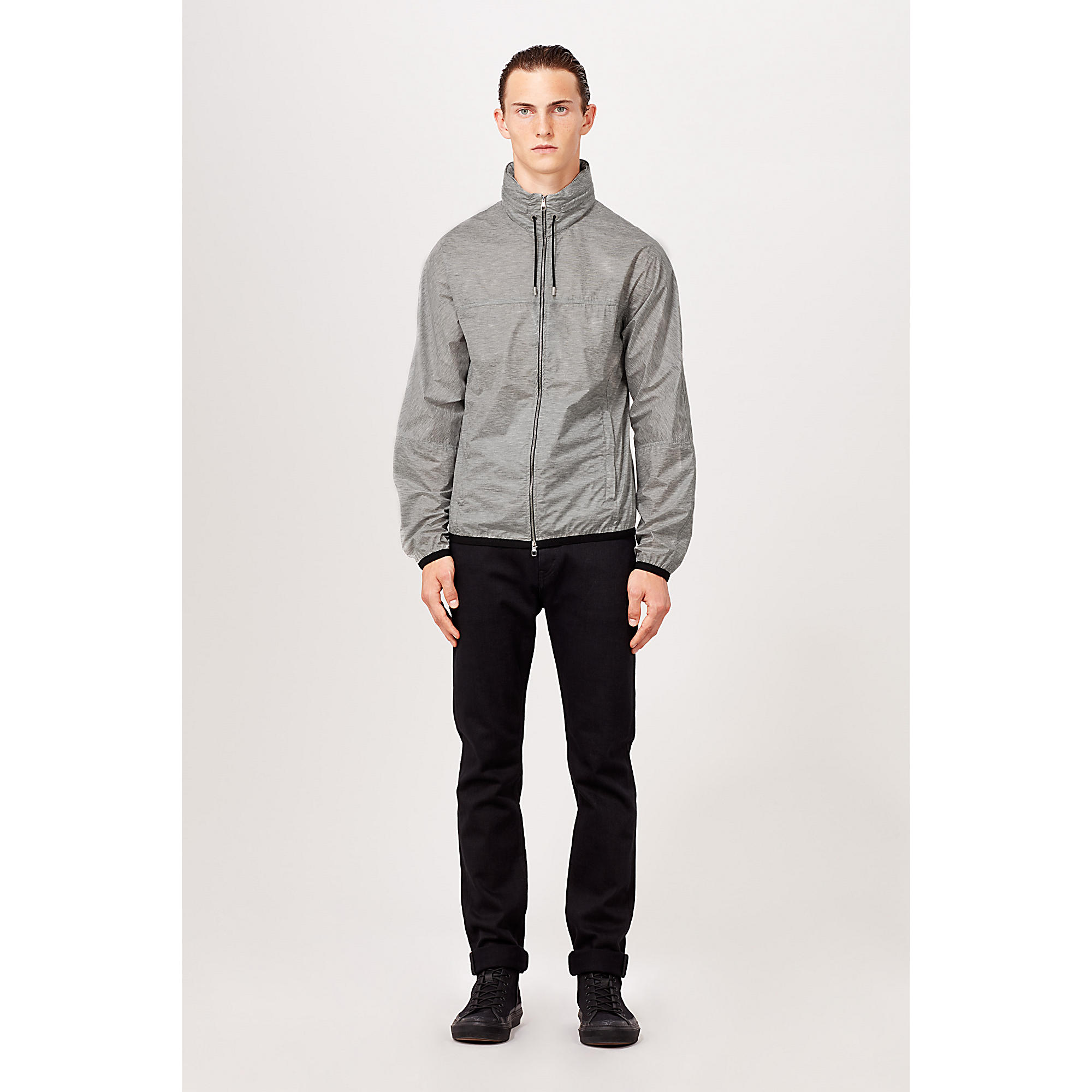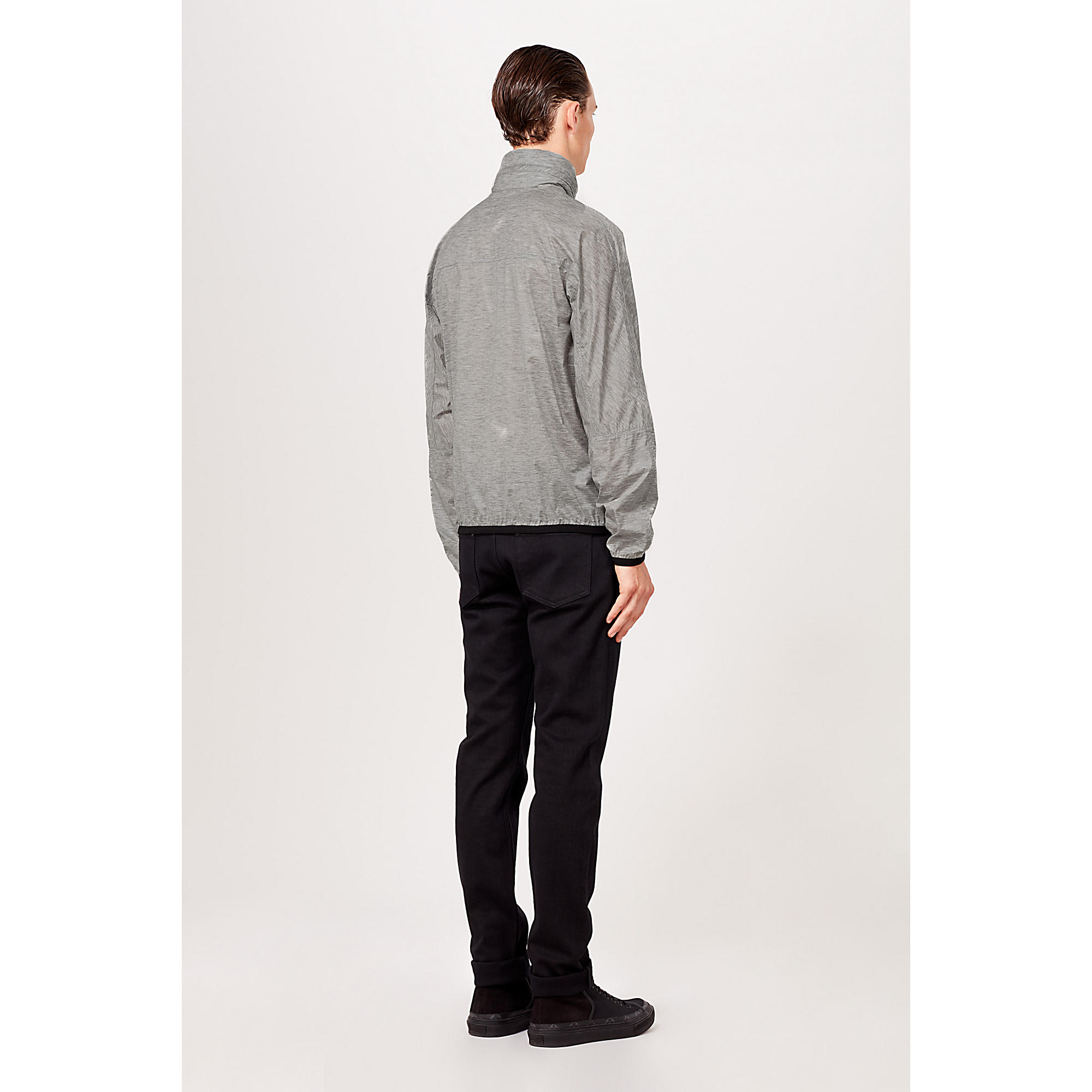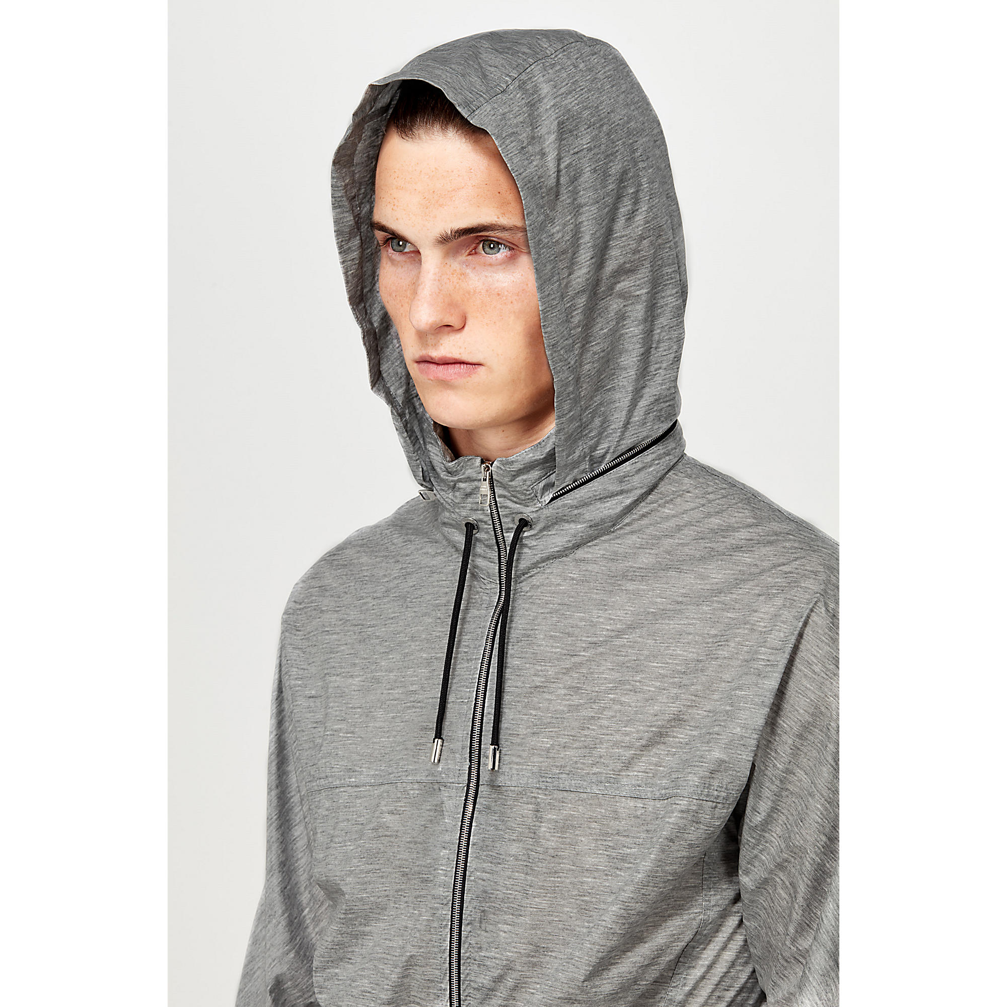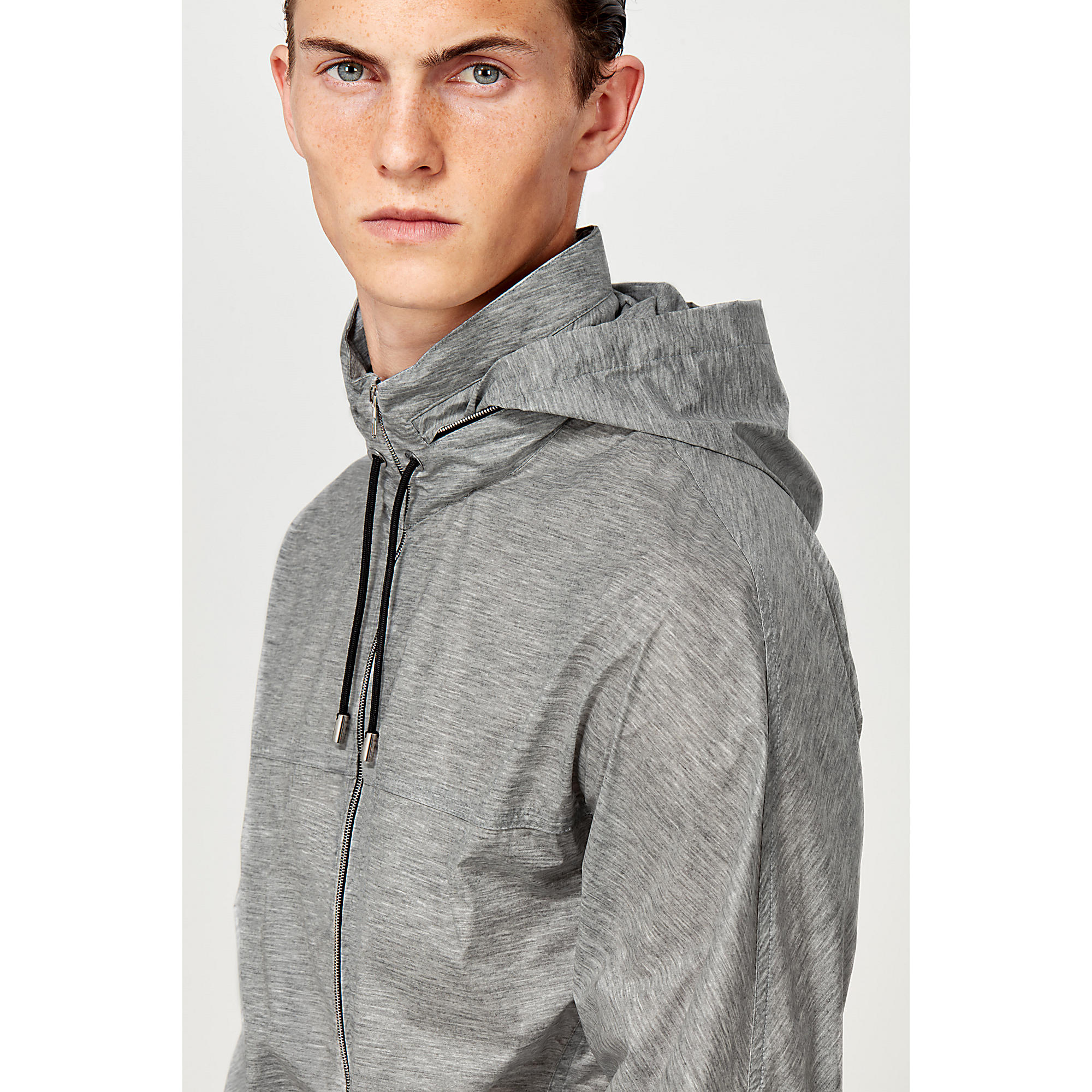 Casual and comfortable, this functional outdoor piece features a water-repellent coating and packable hood.