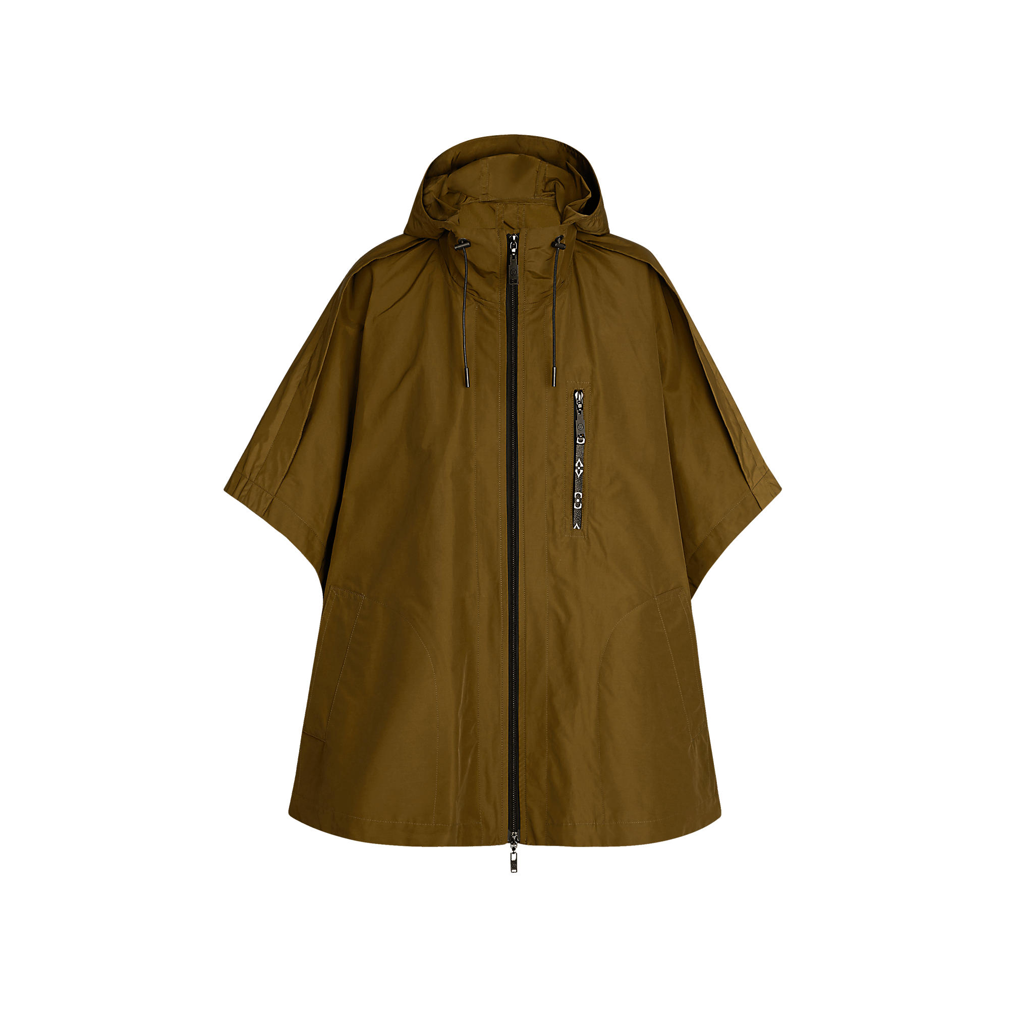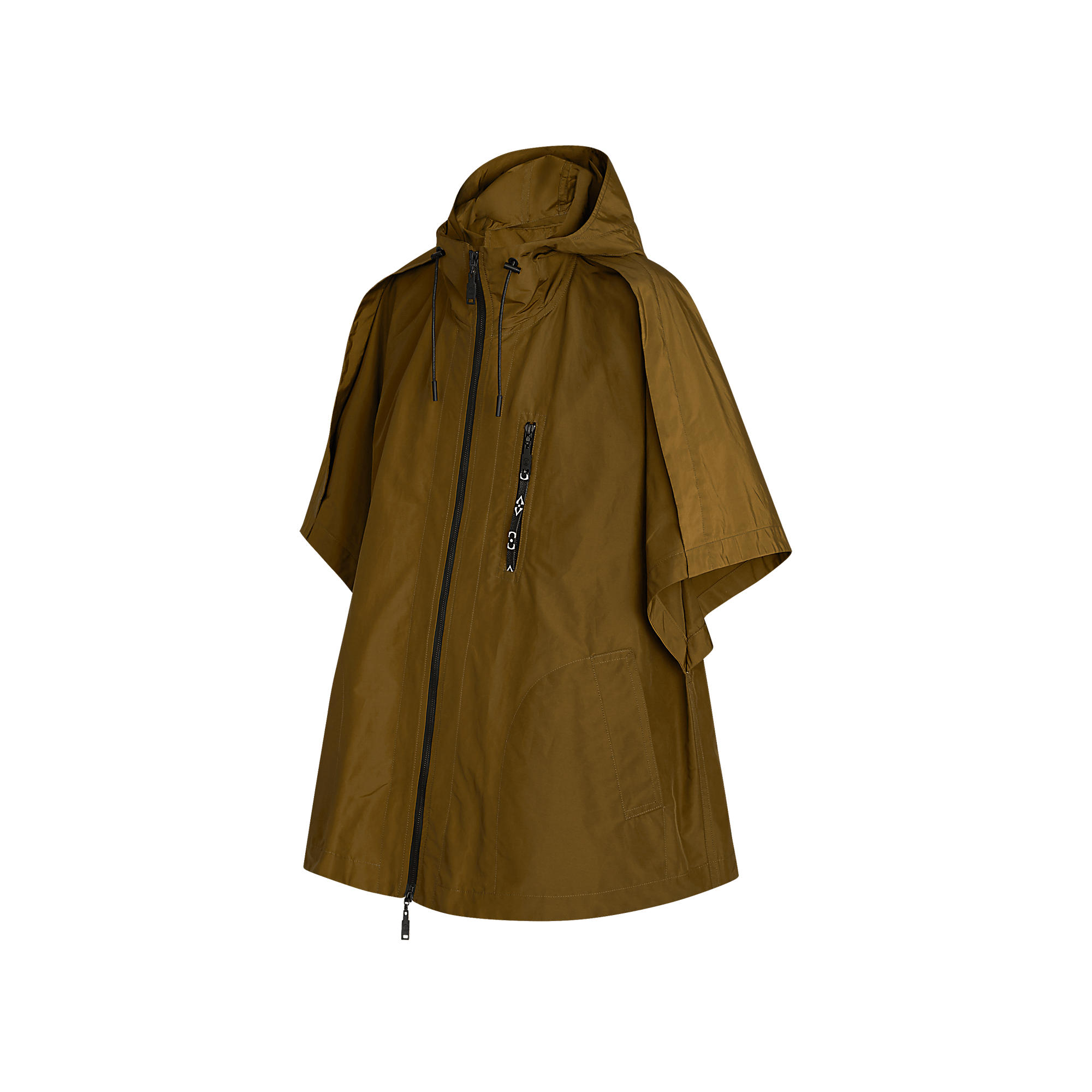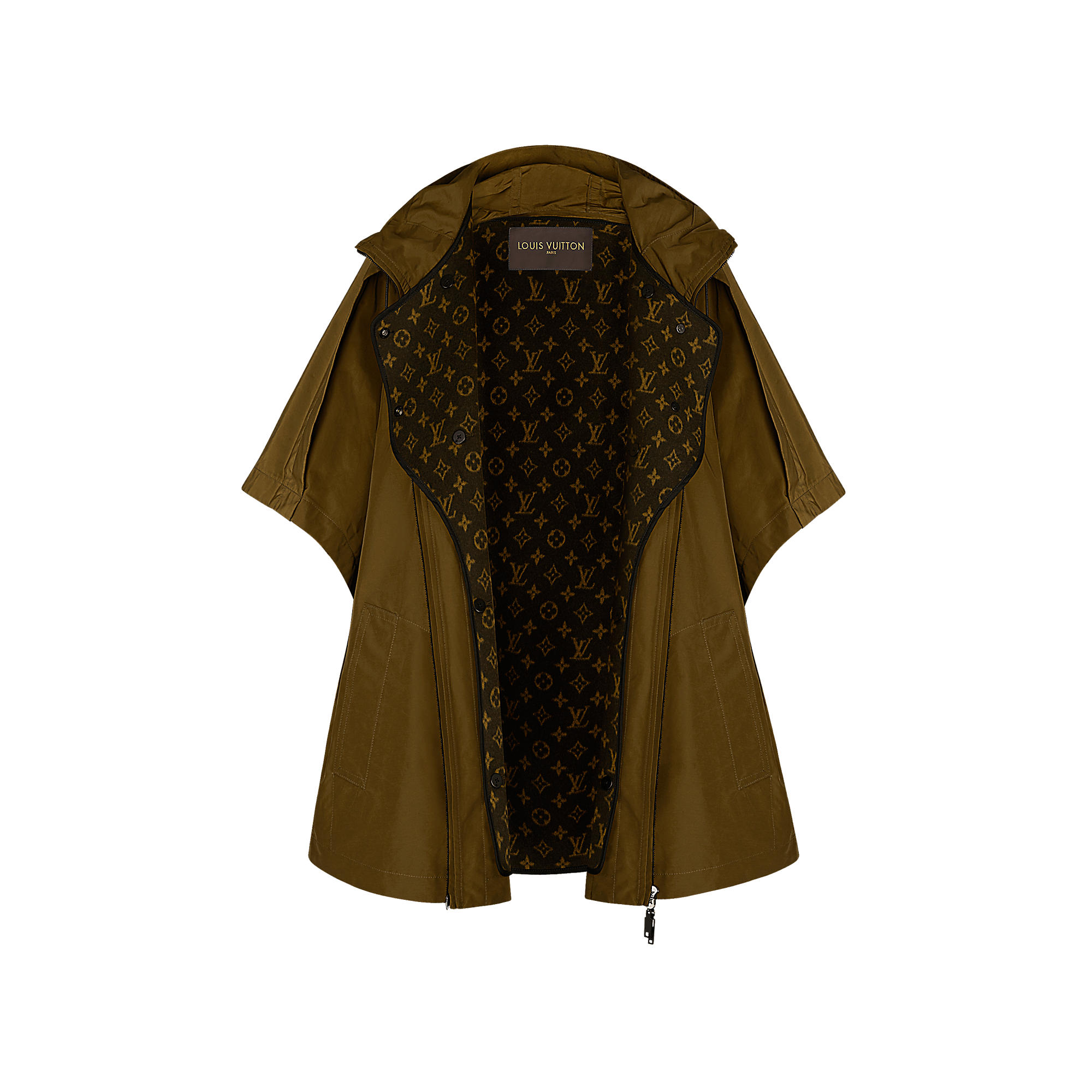 Reflecting the season’s emphasis on capes, this cape combines fashion and function, made from water repellent fabric on the outside and with a Monogrammed removable vest inside. The zip puller is a new signature detail.