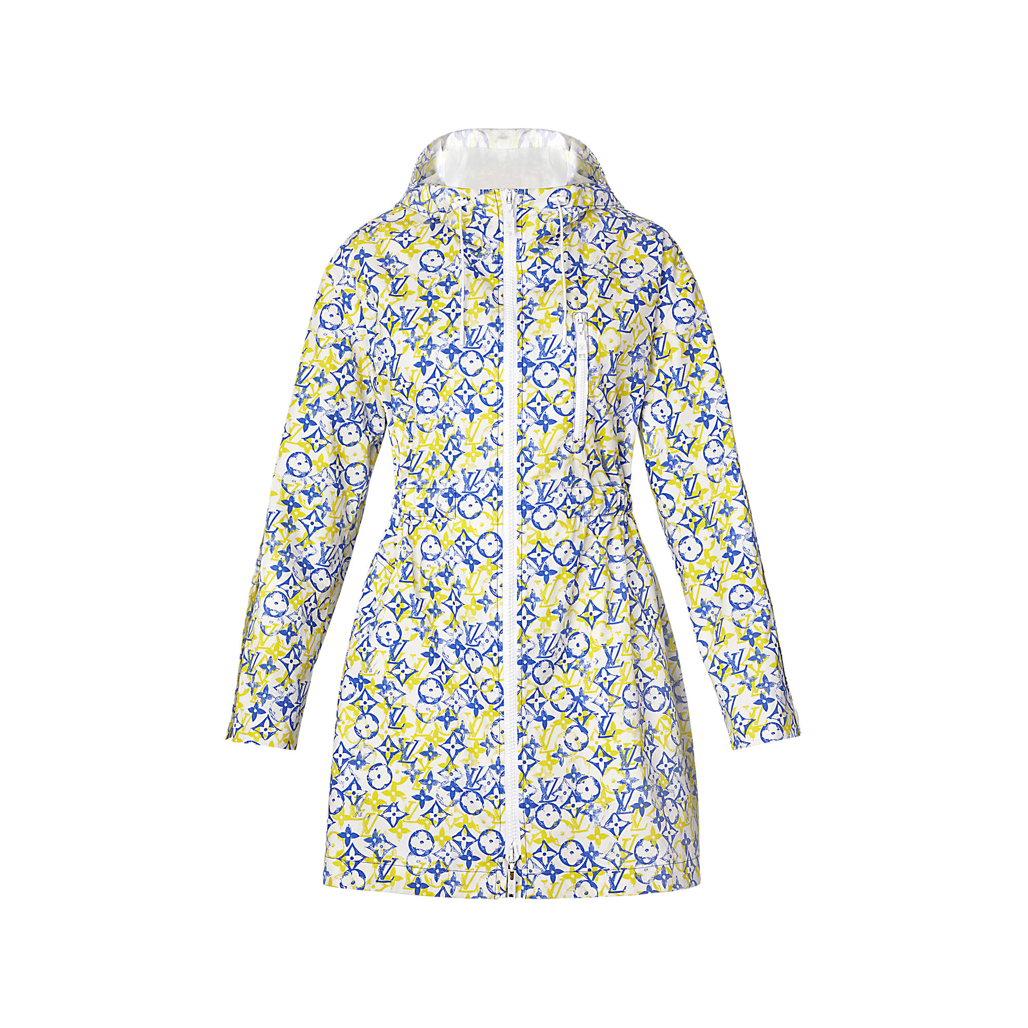 The season’s colourful Monogram, appearing layered and stamped onto a white background, embellishes this parka in water repellent poplin. While lacquered snaps on the sleeves provide a modern signature element and different ways to wear it.