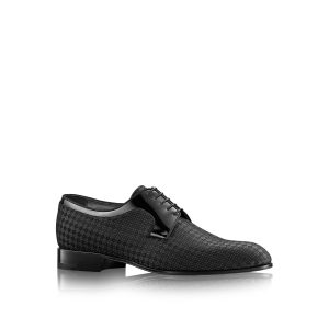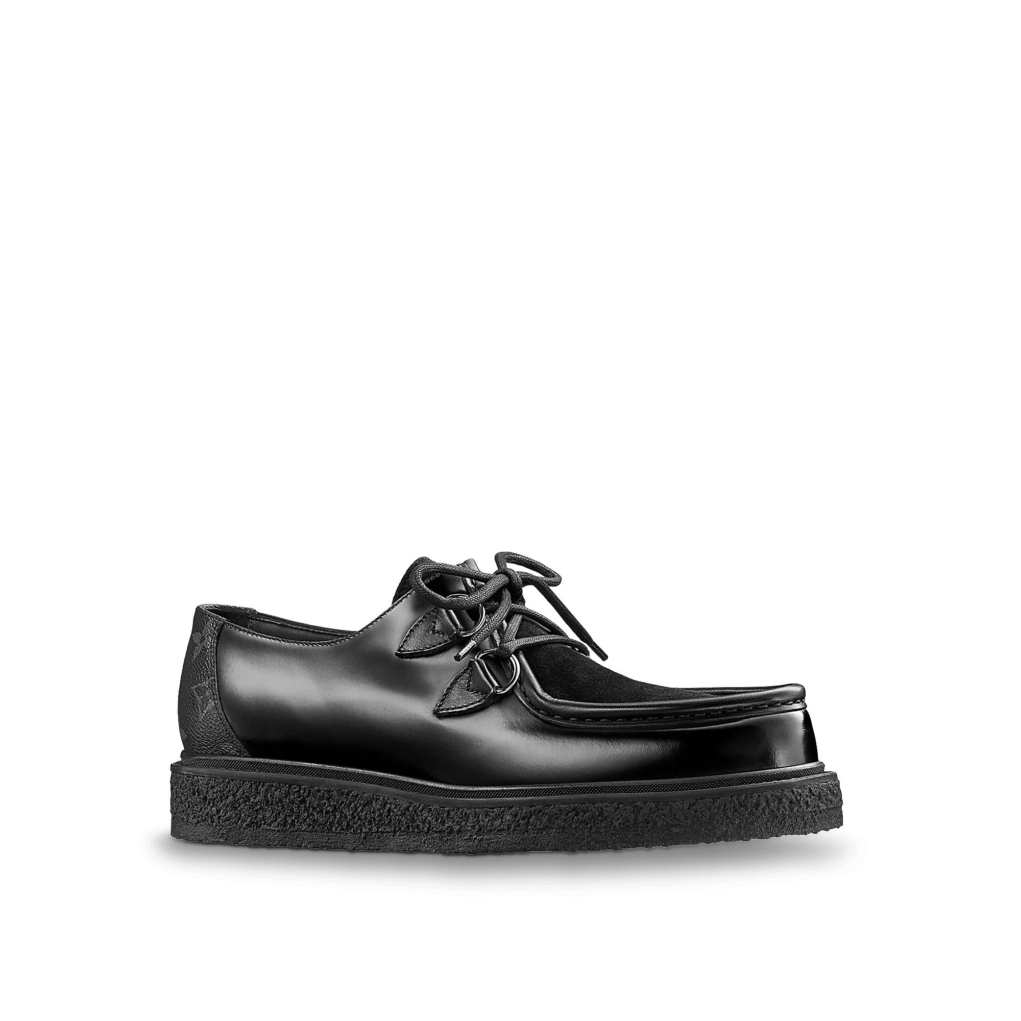 Derby in glazed, suede, calf leather and Monogram canvas with a crepe outsole.